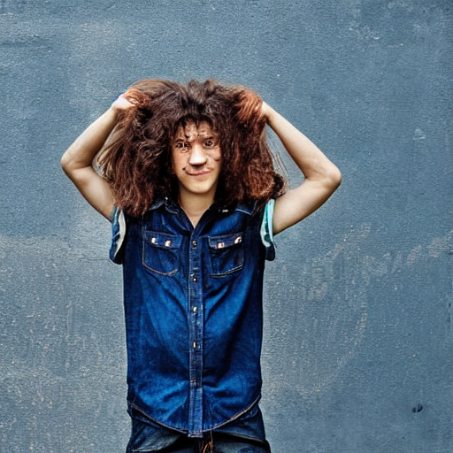 Prompthunt Teenage Bboy Long Shaggy Hair Permed Hair Double Denim Heavy Rocker 2 0 2 2 Photograph